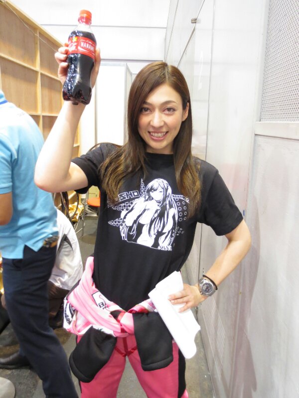本日の部長(笑) 2014年5月17日イベントレポートnobu@mobile 先日、コンビニでNANAMIコーラを発見したので、京商ブースの部長へ差し入れ(^ー^)v ブースではデモンストレーションのMCや撮影会に大忙しの奈々美ちゃんです。 ステージの合間に差し入れ。 なんか安上がりですみませんね・・・笑