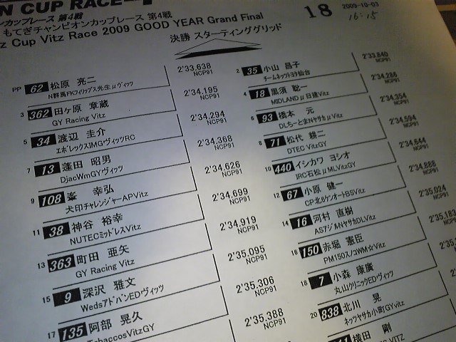 ヴィッツグランドファイナル・予選正式 2009年10月3日モータースポーツnobu@mobile 大変遅くなりましたが・・・一応このような感じになっております( ̄∀ ̄) 明日も皆様、頑張って下さいませー(^∀^)ノ 共有: クリックして X で共有 (新しいウィンドウで開きます) X Facebook で共有するにはクリックしてください (新しいウィンドウで開きます) Facebook いいね:いいね 読み込み中… 関連